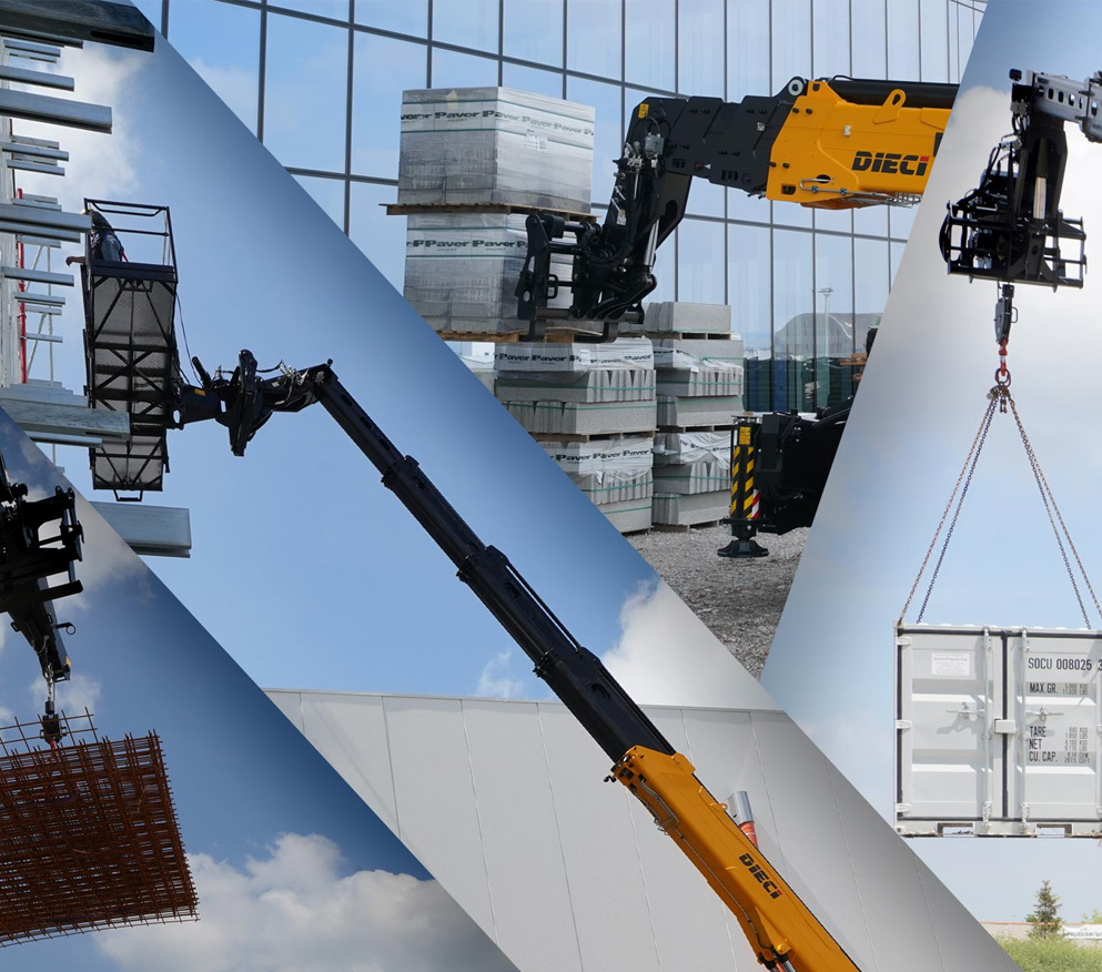 Szeroka gama dostępnego wyposażenia dodatkowego umożliwia obrotowym maszynom teleskopowym Dieci wykonywanie wszystkich prac koniecznych na budowie.